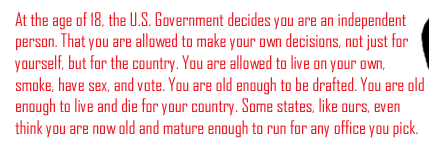 The City Charter states the age to run is 25 for the offices of City Council or Mayor, but we think it should be lowered to 21! Why 21? Because it's step in the right direction! At 21, your finally able to drink, and your only 4 years younger than the current requirement, so why not allow someone who's 21 to run? Why deny them that right?